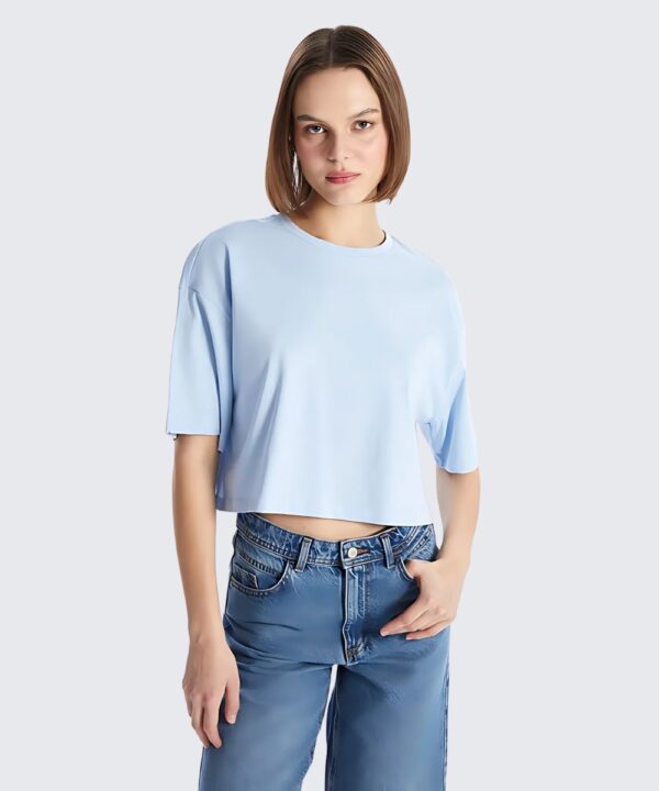 Veja abaixo as especificações de nosso Cropped Estilo na cor azul celeste.