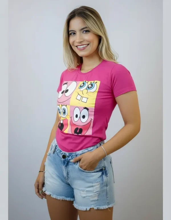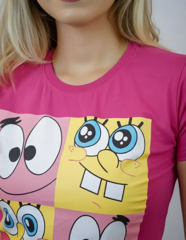 Veja abaixo as especificações de nossa T-Shirts Bob Esponja e Patrick na cor rosa.