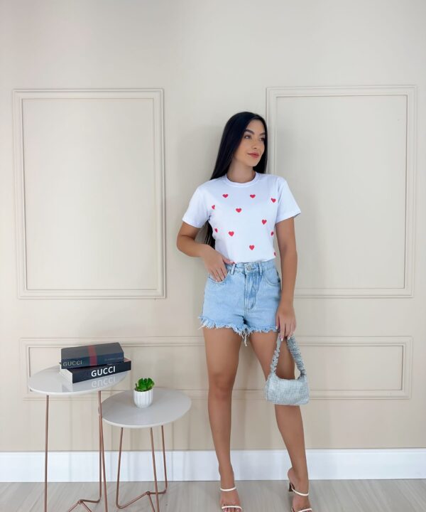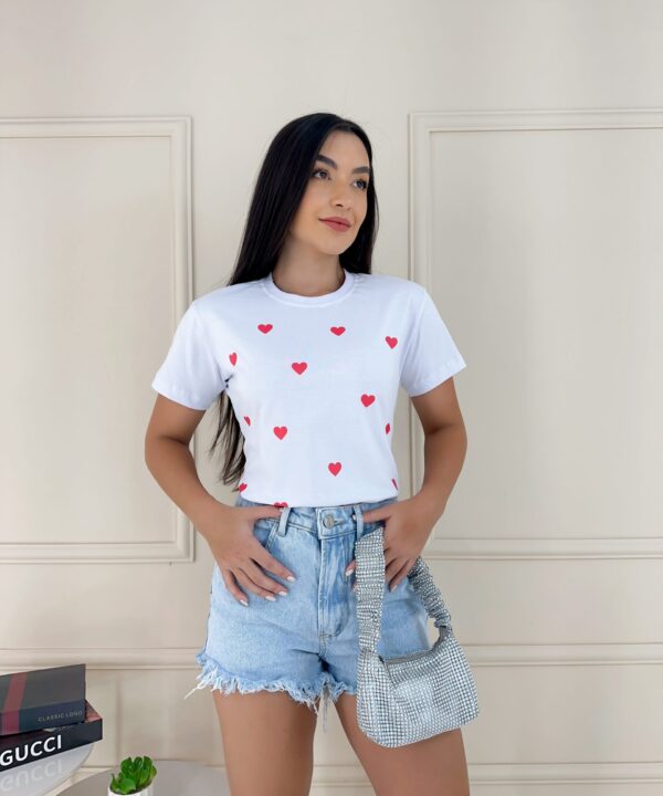 Veja abaixo as especificações de nossa T-Shirts Corações na cor Branca