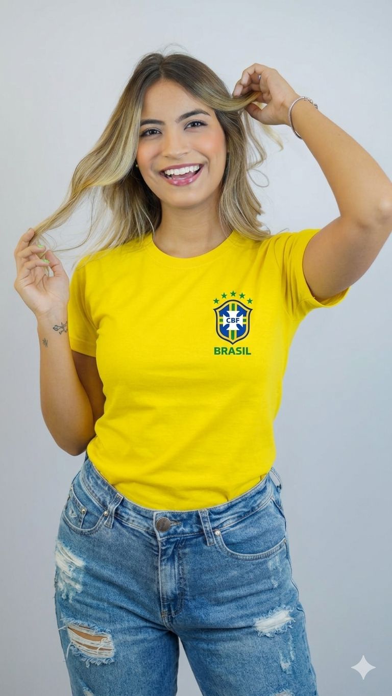 Veja abaixo as especificações de nossa Camiseta do Brasil na cor Amarela.