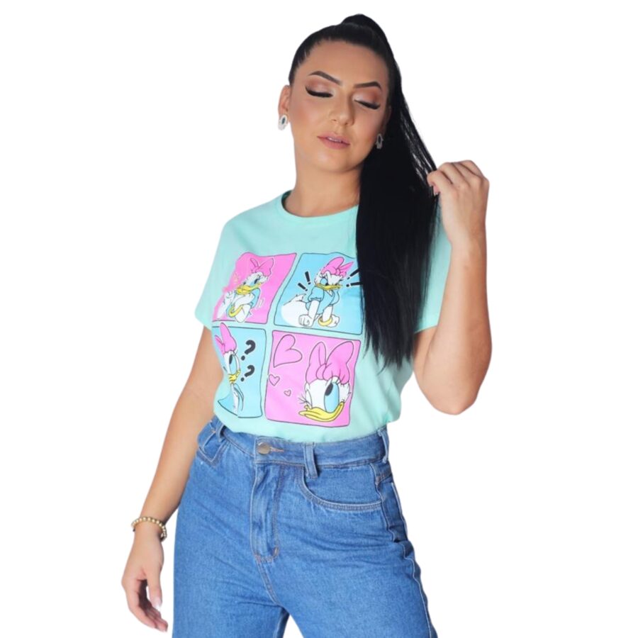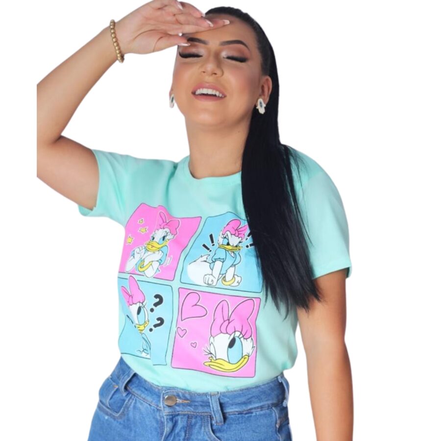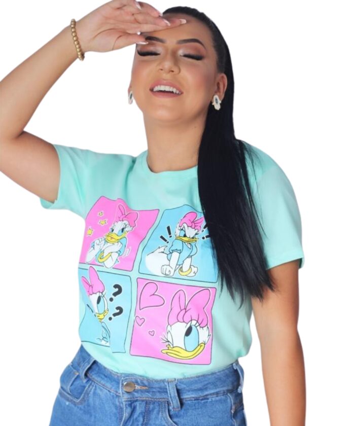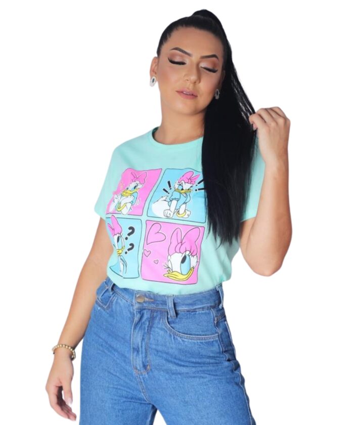 Veja abaixo as especificações de nossa camiseta personagem Margarida na cor verde.