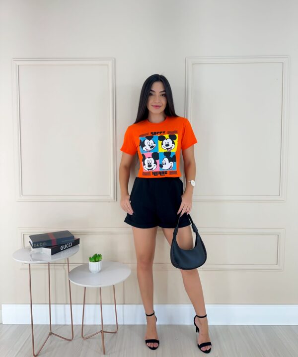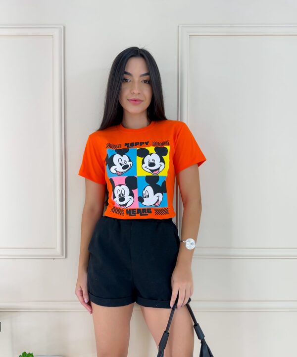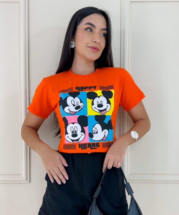 Veja abaixo as especificações de nossa T-Shirts Mickey Happy na cor Laranja