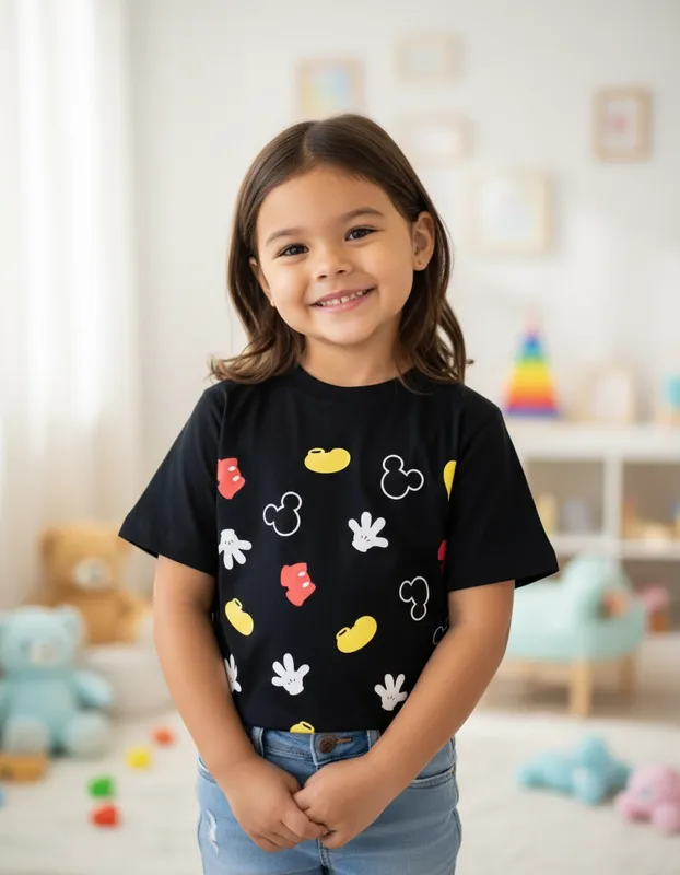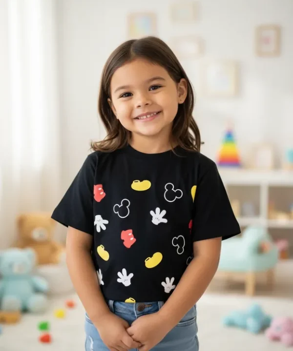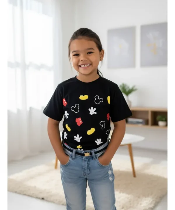 Veja abaixo as especificações de nossa T-Shirt Infantil personagem Mickey Parts na cor preta.