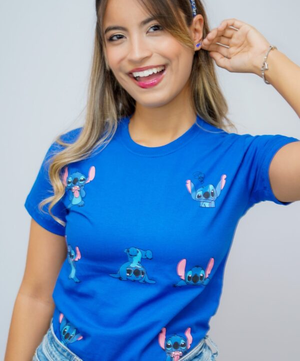 Veja abaixo a especificação de nossa T-Shirt Ohana Lilo Stitch na cor azul.