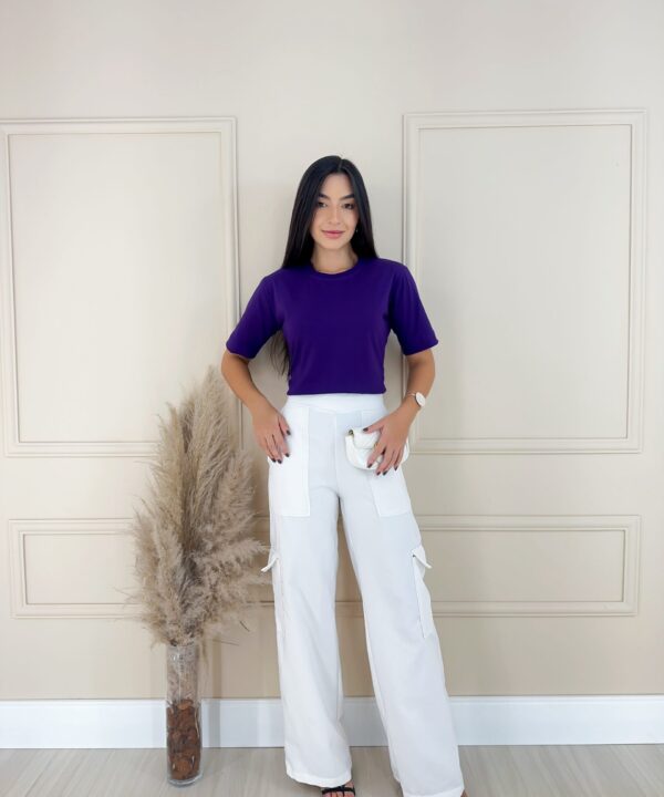 Veja abaixo as especificações de nossa camiseta Lisa básica na cor roxa.