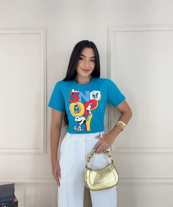 Veja abaixo as especificações de nossa camiseta personagem Snoopy na cor verde.