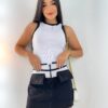 Veja abaixo as especifica de nossa Regata Ribanna na cor branca gola preta
